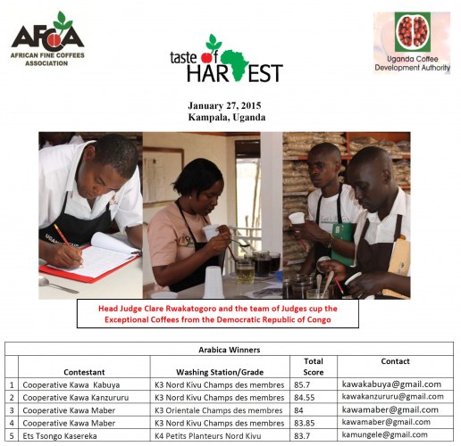 Les 5 meilleurs échantillons seront maintenant admis au concours régional à Nairobi le vendredi 13 février 2015. Un vendredi 13? Nous ne sommes pas superstitieux! Nous croyons à la qualité extraordinaire du café congolais!