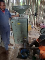 Parlant du riz, n’étant pas une culture pérenne comme le palmier à huile et le cacao, les réalités sont relativement différentes. La riziculture pluviale est pratiquée. Les variétés les plus utilisées dans la zone sont le Nerica 4 et 7, Liyenge et le Baibinge. Le rendement à l’hectare est moins d’une tonne et en constante baisse en raison de la dégénération des semences et des ravages par les oiseaux. Au niveau de la commercialisation du riz, beaucoup de défis sont à relever. Le transport de paddy se fait à dos d’homme ou de femme du champ vers la décortiqueuse et de la décortiqueuse vers le marché. A cela s’ajoute la non-standardisation des unités de mesure : certain·e·s utilisent des seaux, d’autres des filtres de camion, etc. À la rizerie, il y a des commerçant·e·s ambulant·e·s qui achètent la production avec des unités de mesures truquées. Et si la quantité n’est pas vendue à la rizerie, elle est ramenée à la maison pour l’autoconsommation et/ou soumise à la vente au détail.